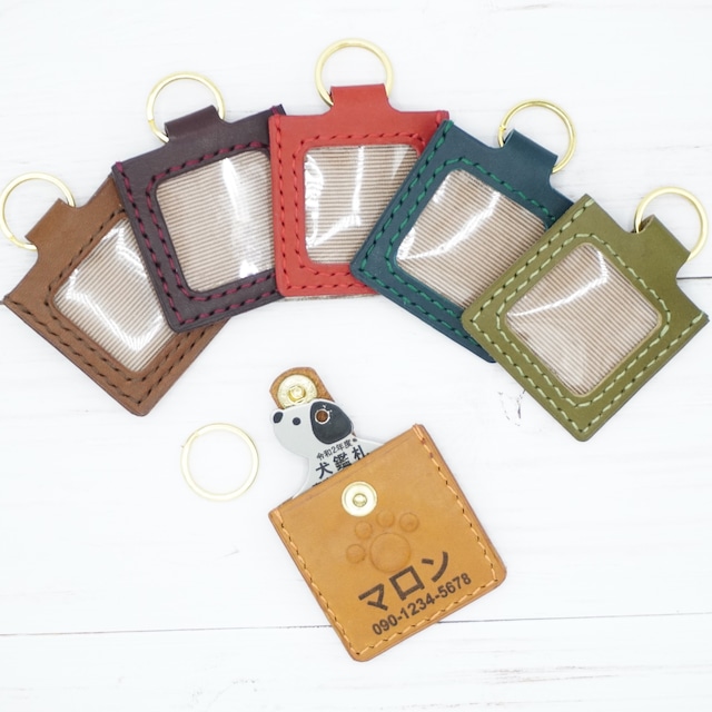 肉球マークがかわいいわんちゃんの鑑札入れ イタリアンレザー 名入れ