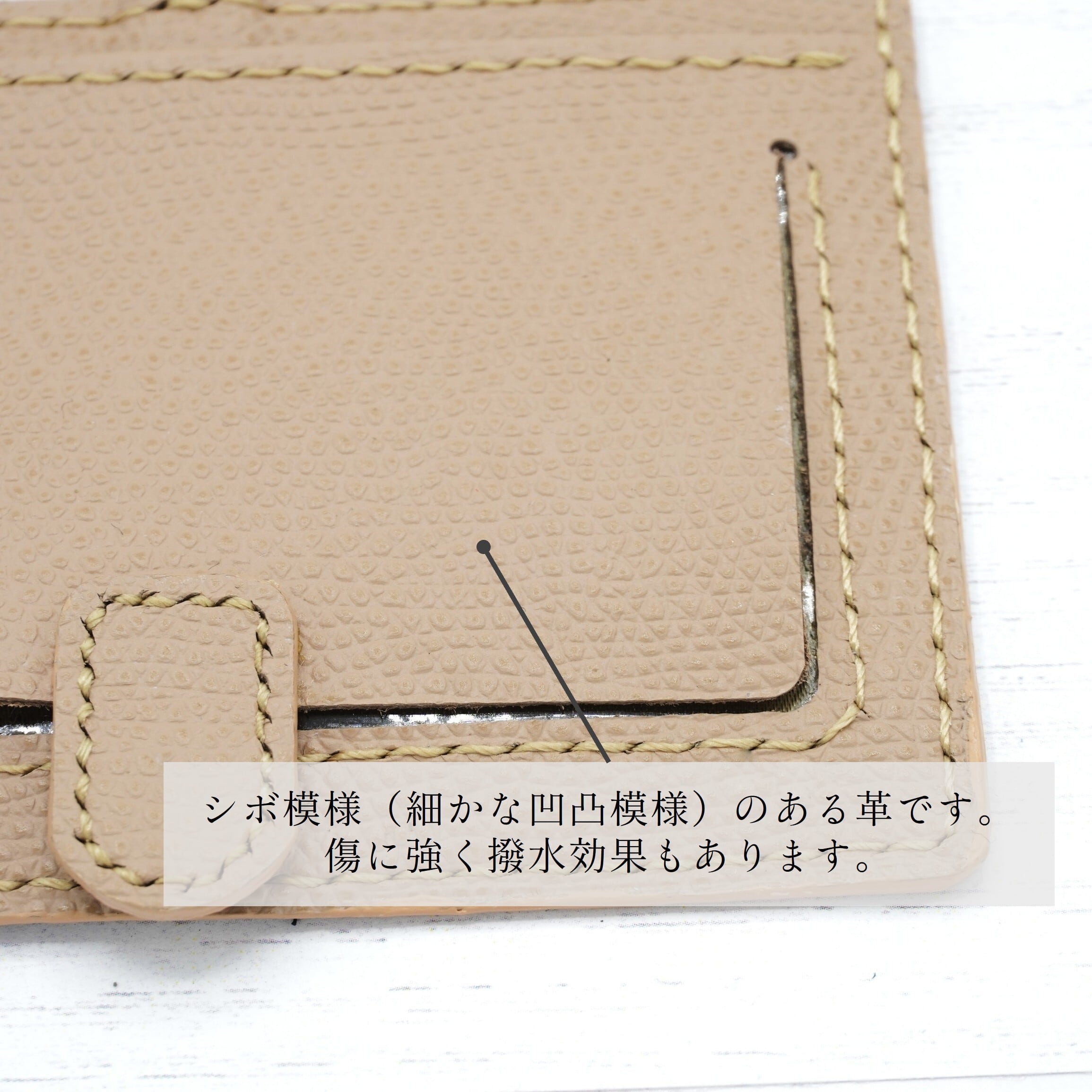 フランス産高級レザー(Epsom)を使用しております。軽量でハリのある質感です。
