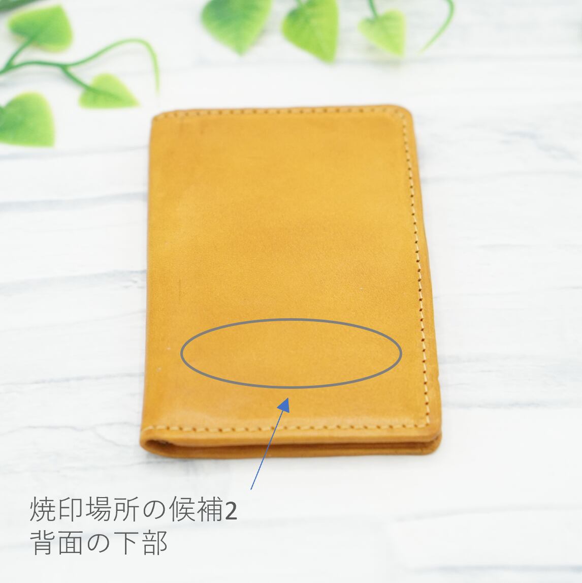 オプションで革に名入れ、もしくはメッセージをお入れいたします。