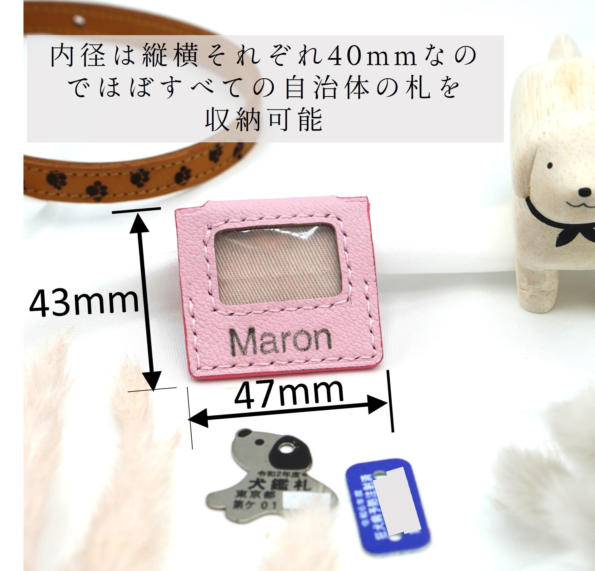 ・ コンパクトながら、全国の自治体のほぼすべての鑑札が収納可能です。(最大縦40mm、横40mmのサイズに対応)