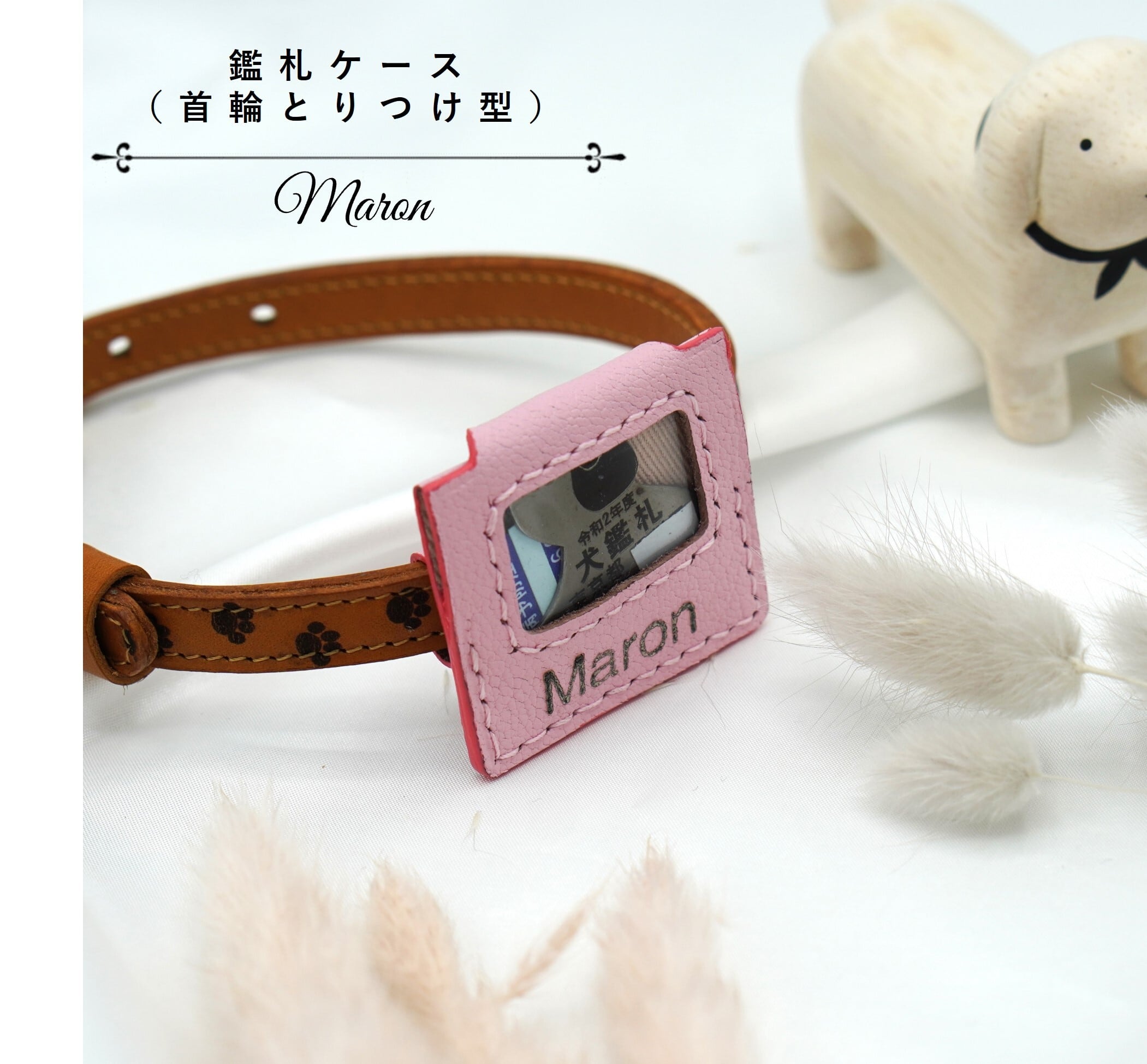 (首輪やリードなどにぶら下げるタイプの鑑札ホルダーはこちら → https://leathermaron.handcrafted.jp/items/90730195