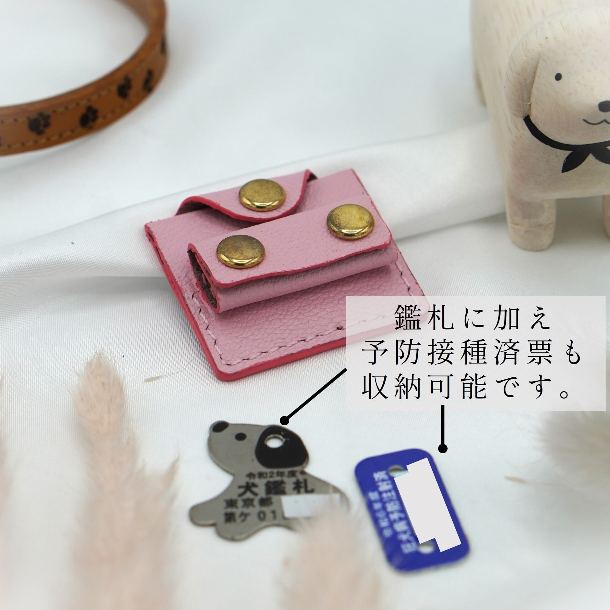 ・犬鑑札にくわえて狂犬病予防注射済票も入ります。