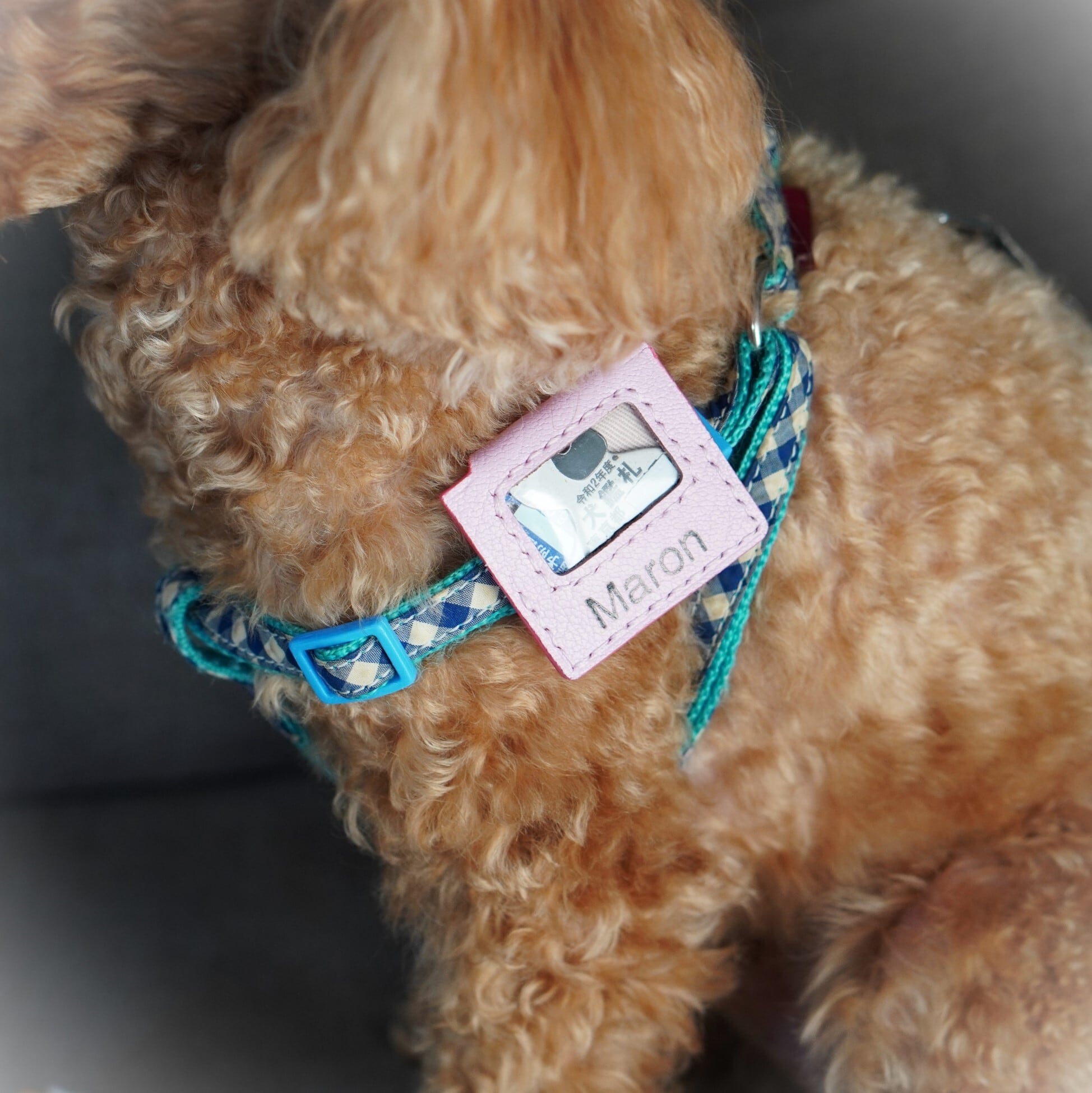 パステルカラーがかわいい鑑札入れ 名入れ フレンチレザー 首輪装着型