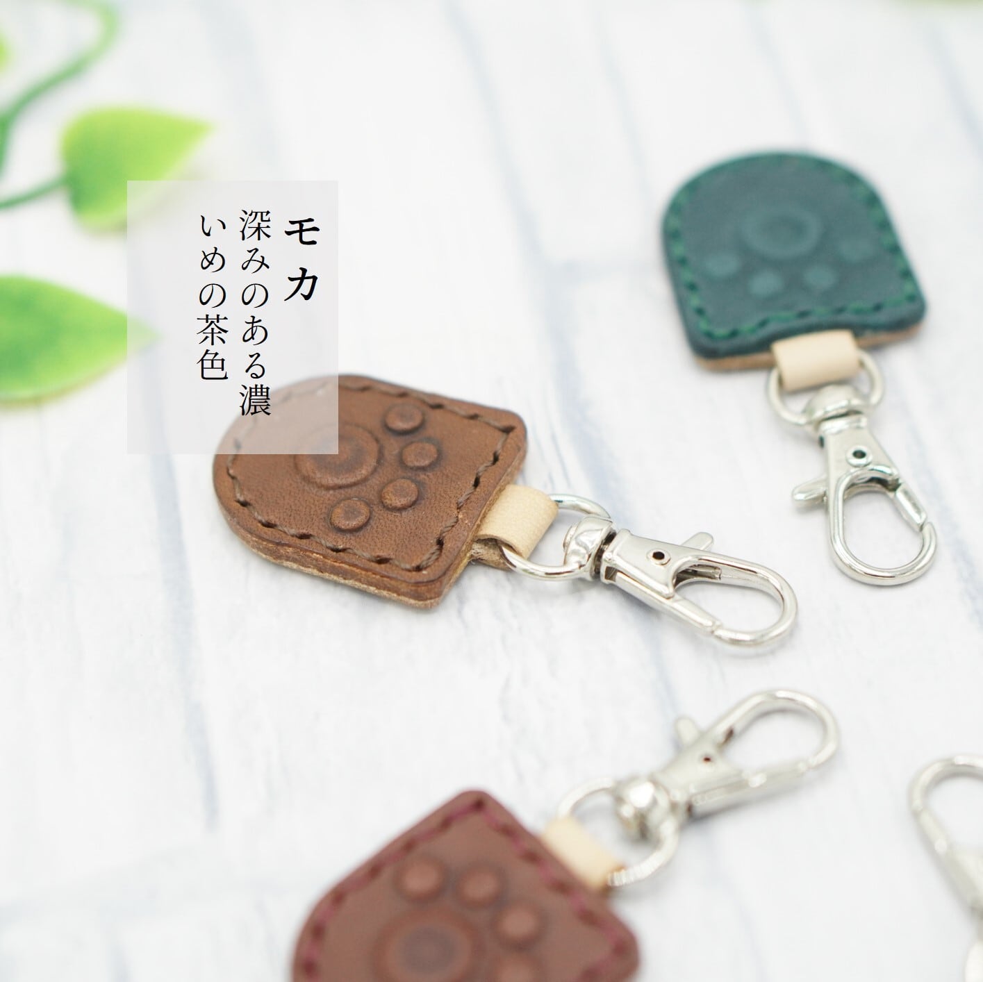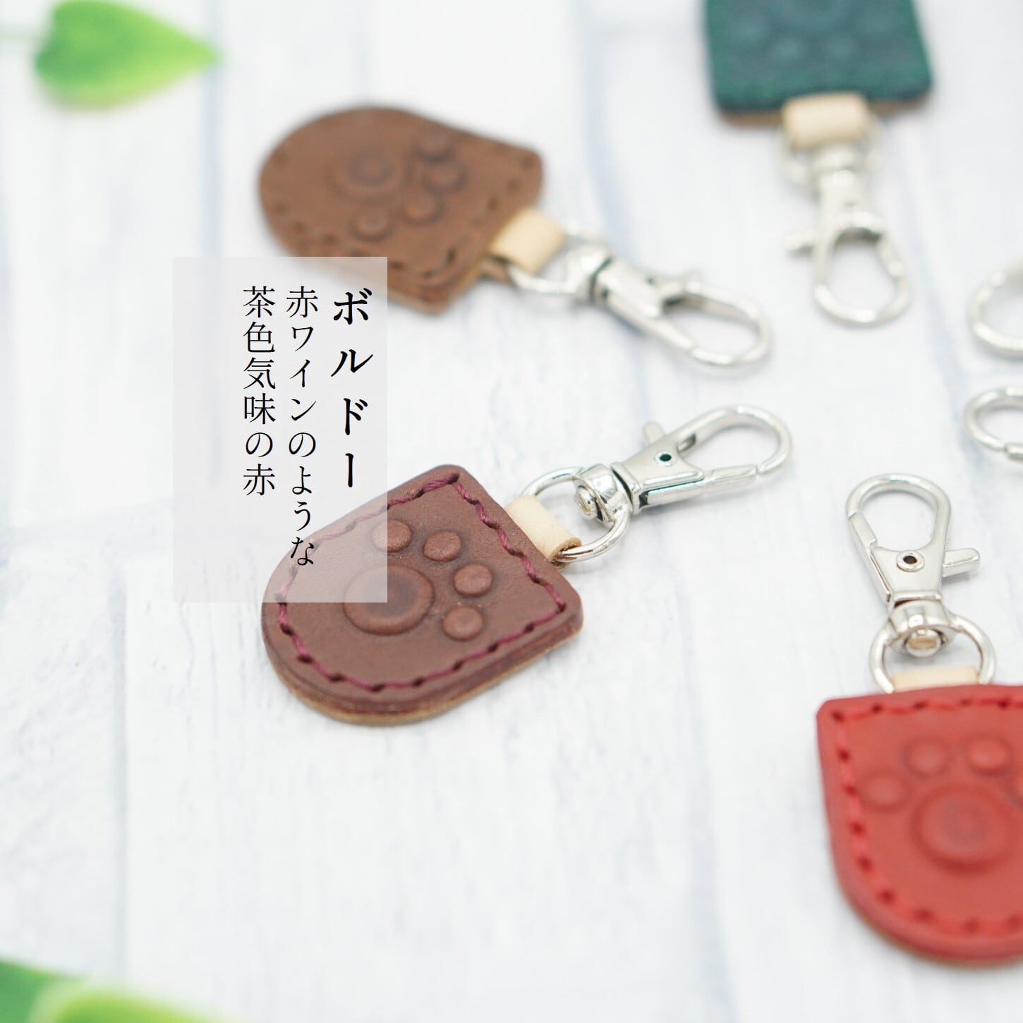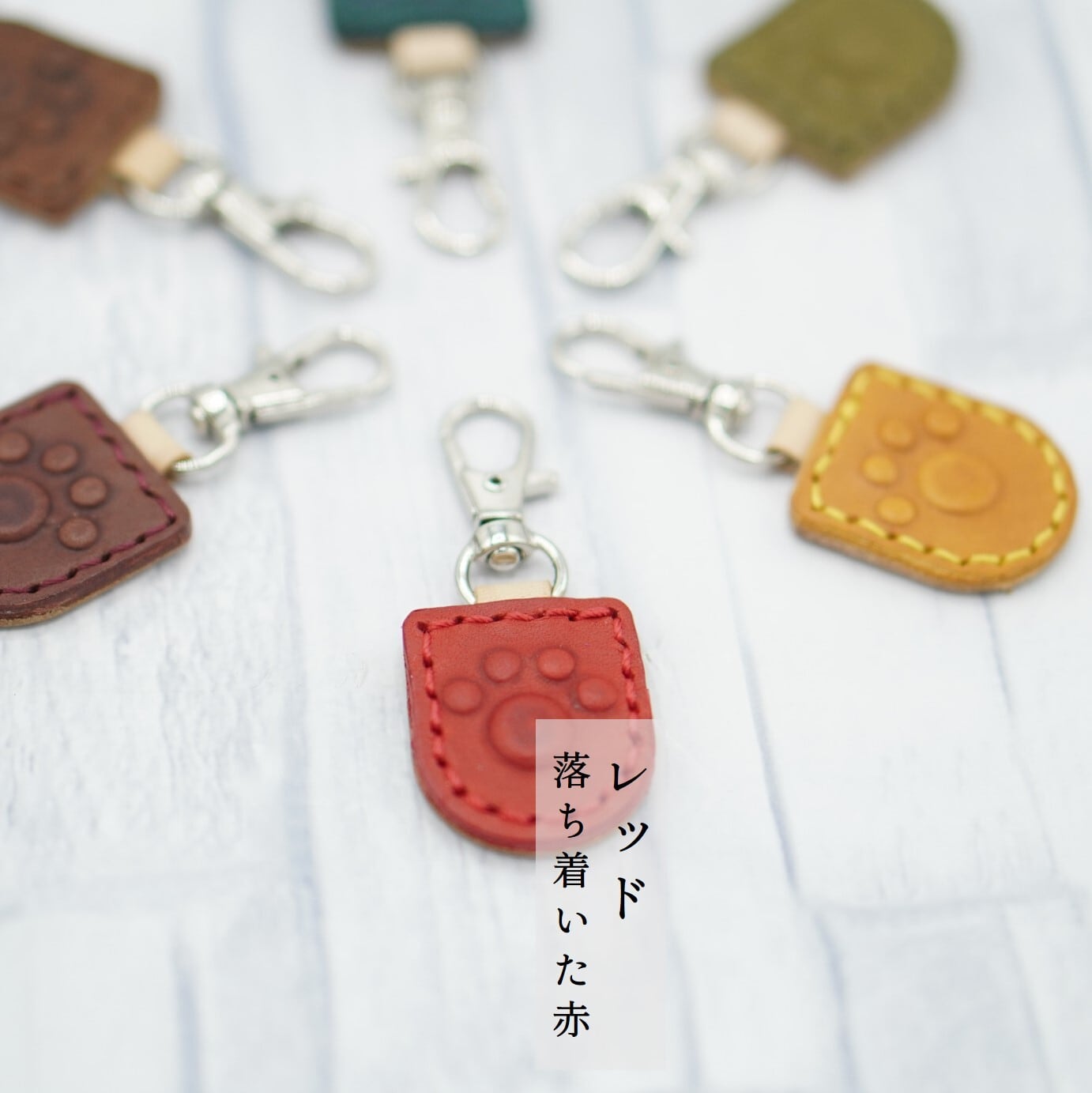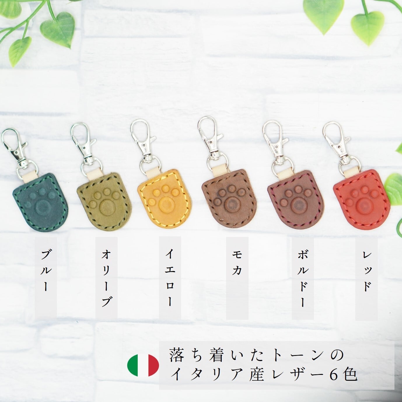 肉球マークがかわいいキーホルダー 文字入れ 本革