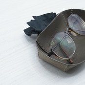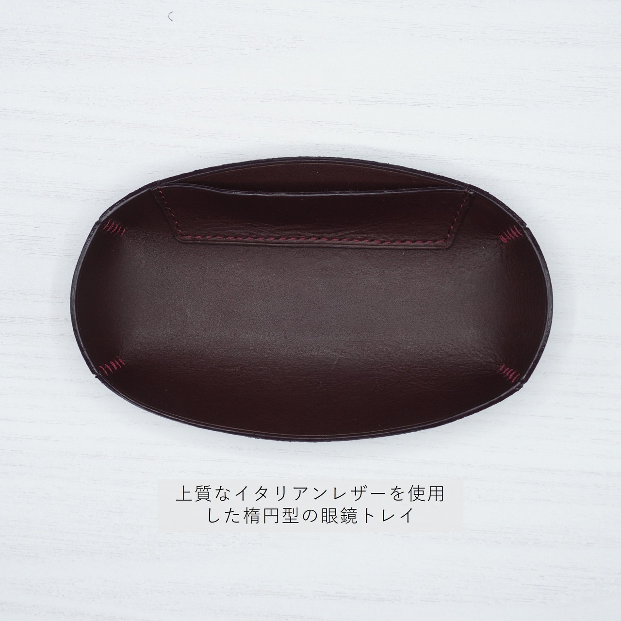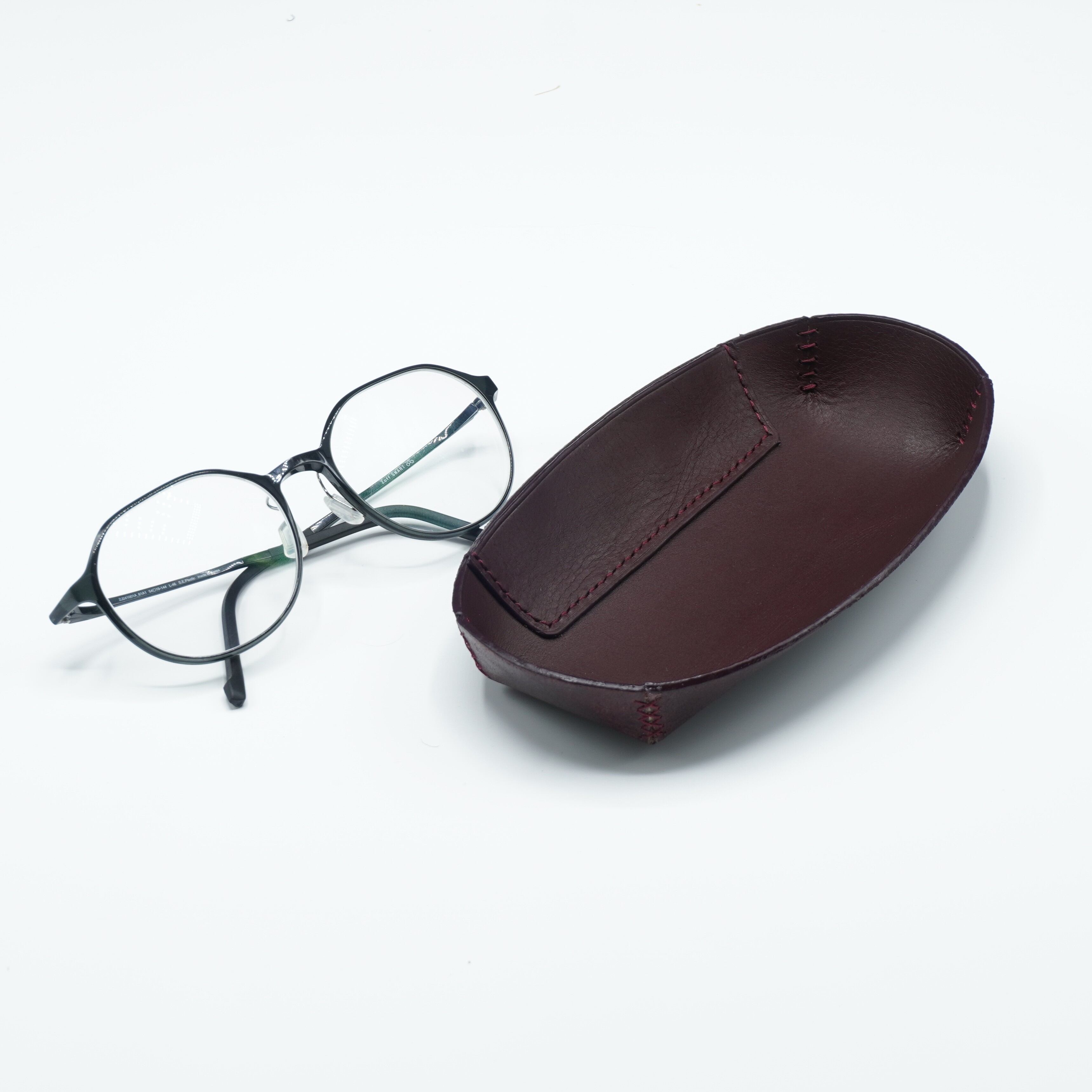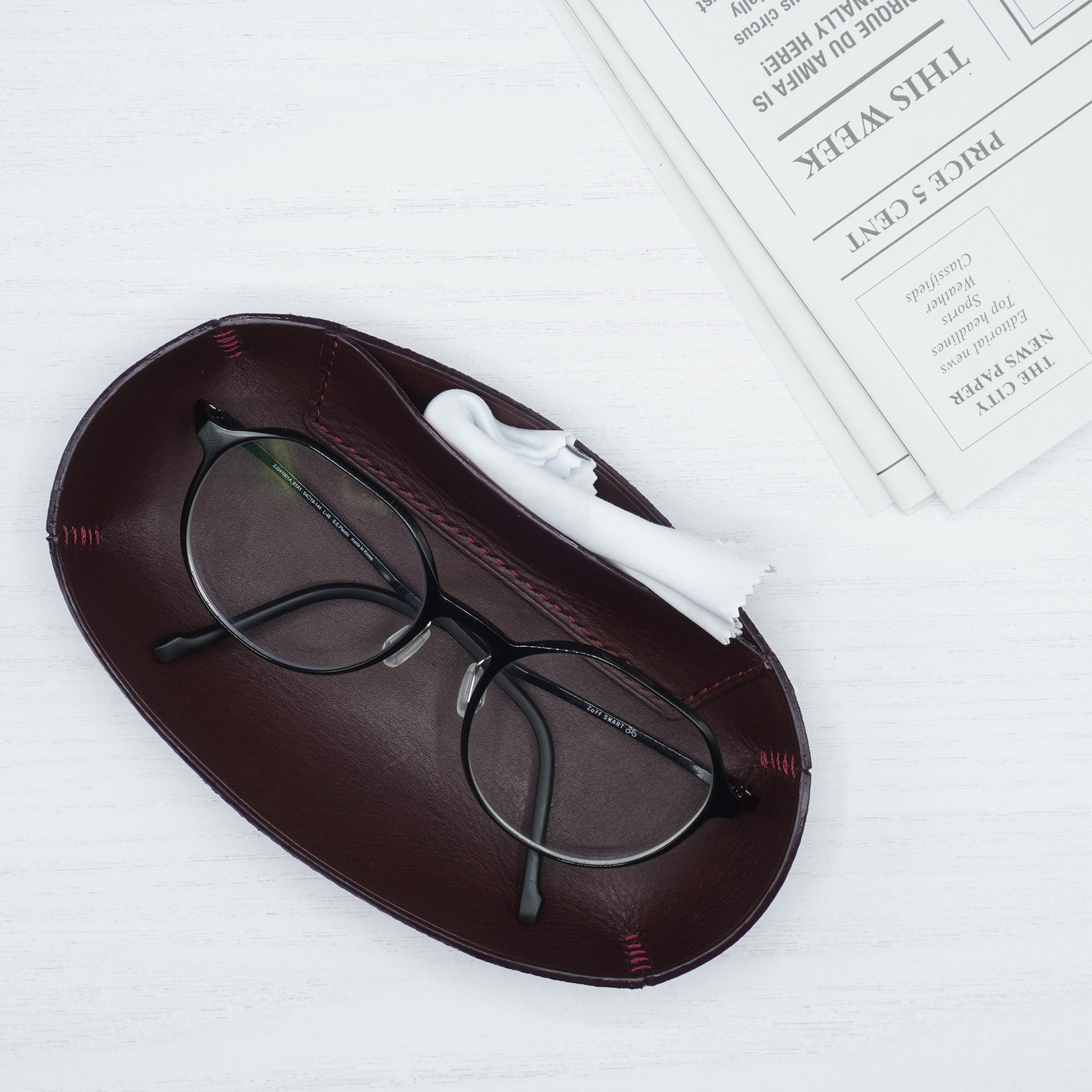 まるく包む、レザーメガネトレイ、眼鏡ふきポケット付