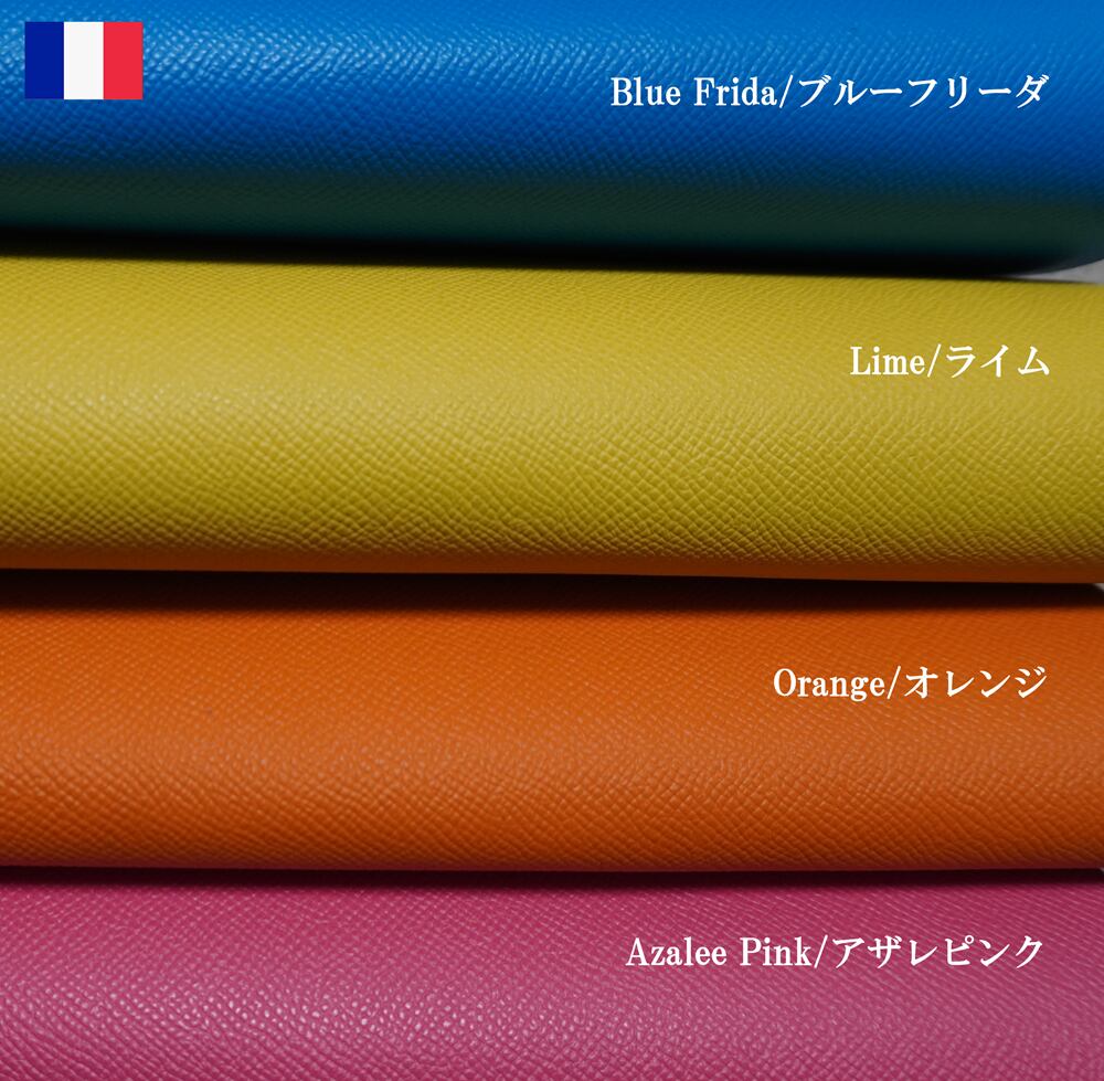 フランス産レザー(表面に凹凸がある(シボ加工)タイプです。鮮やかな発色。)
