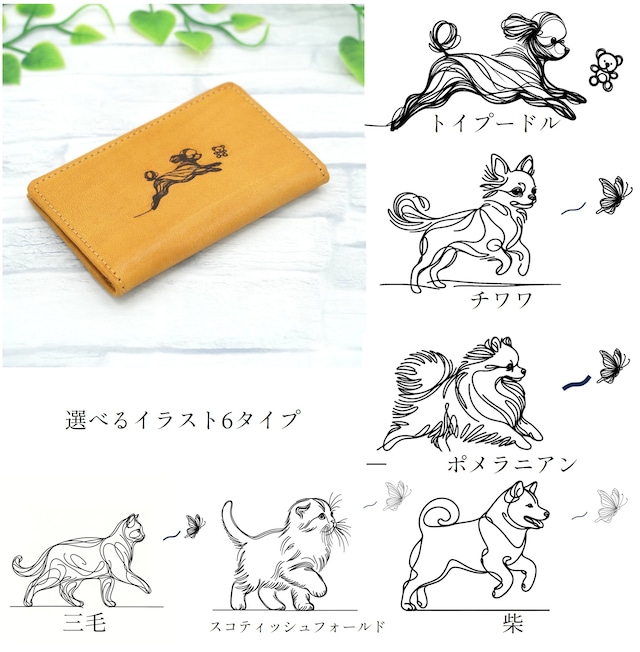 \イタリア産高級牛革を使用したパスケースです/ 動画はこちら↓ https://www.instagram.com/reel/C81MTfHugGR/ 【収納力】 ・透明ケーススロット×1 ・ポケット×1 【デザイン】 ・シンプルでスタイリッシュなデザインのわんちゃんねこちゃんのイラストがついています。 ・薄くてコンパクトなサイズに仕立てています。 【カラー】 イラストは以下からお選びできます。 ・トイプードル ・チワワ ・ポメラニアン ・柴 ・スコティッシュフォールド ・三毛 【カラー】 選べる色は6種類です。ご希望の色をオプション欄にて指定してください。 * イエロー * レッド * オリーブ * ブルー * モカ * ボルドー * グレージュ * ミッドナイトブルー 【名入れ】 オプションで革に名入れ、もしくはメッセージをお入れいたします。 掲載写真にあるようにフォントをお選びいただけます。 * ひらがな・カタカナ・漢字: ゴシック体 /明朝体/手書き風 * アルファベット: 楷書体/筆記体 /手書き風 フォントタイプはオプション欄から選択ください。 1行につき最大10文字程度となり、フォントサイズは文字総数によって変動します。 備考欄に焼印する名前やメッセージをお教えください。 【カスタムオーダー】 ・名入れ個所はイラストの下部ではなく、裏面にしてほしい、 ・ポケットは2段にしてほしい ・透明カードケースを両面につけて2つにしてほしい ・裏地は別色にしてほしい など、個別のオーダーに対応いたしますので、遠慮なくご連絡ください。 【革について】 イタリア、トスカーナ州にあるコンチェリア 800社で製造されているトスカーノリスシオという革を使用しています。 市販品によく見られる合成レザーとは異なり、本革ならではのしっとりとした有機的な風合いがあり、上品な質感です。 【糸について】 革と同系色の糸をつかったミシン縫いです。 【納期について】 受注後に作製いたしますので、ご入金いただいてから発送までは2日程度をいただいております。早く完成した場合は、予定日を待たずにすぐに発送致します。 【本革素材について】 本革は天然素材ですので細かな色むらや傷があることをご了承ください。 一つひとつ手作業で作成しますので、柄の位置等が多少異なる場合がございます。 エイジングといって、紫外線や手の脂の影響を受け、より深みのある色に経年変化します。 【お手入れについて】 軽度な傷であれば、指や布でこするだけで消すことができますが、革用クリームを使えばよりキレイに傷を消せることができます。 【糸のほつれやパーツの破損について】 糸がほつれた場合やパーツが外れた場合などは修繕致しますので、ご連絡ください。